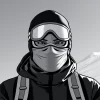 Alan Colyer created, prompt is: coping wojack with smug mask whose shoulders are ski slopes