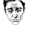 Dima Petrenko created, prompt is: Wojak face showing exhaustion and despair, black and white minimalist…